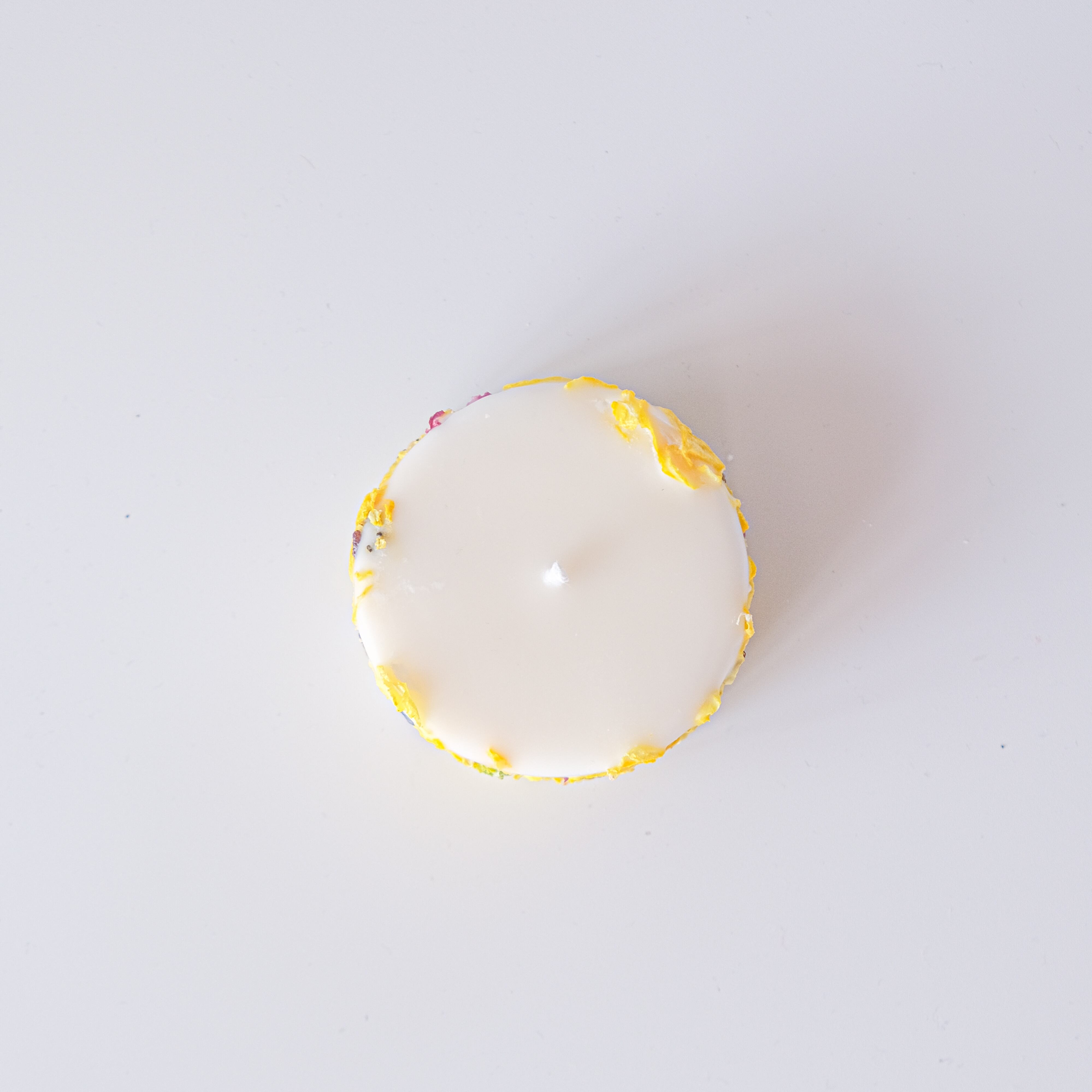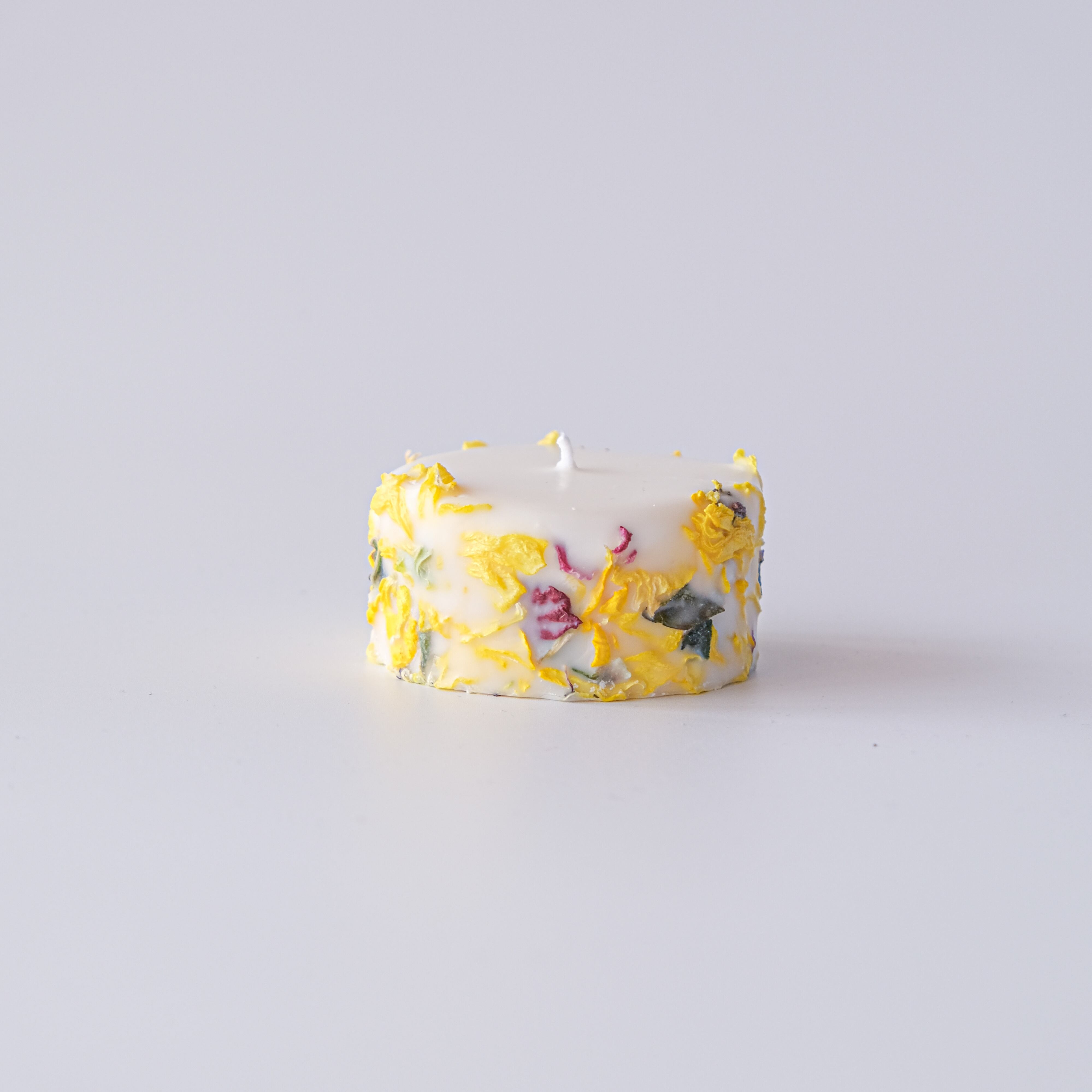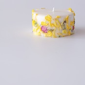 ラナンキュラスの黄色の花びらを中心にキャンドルに閉じ込めたキャンドルです。