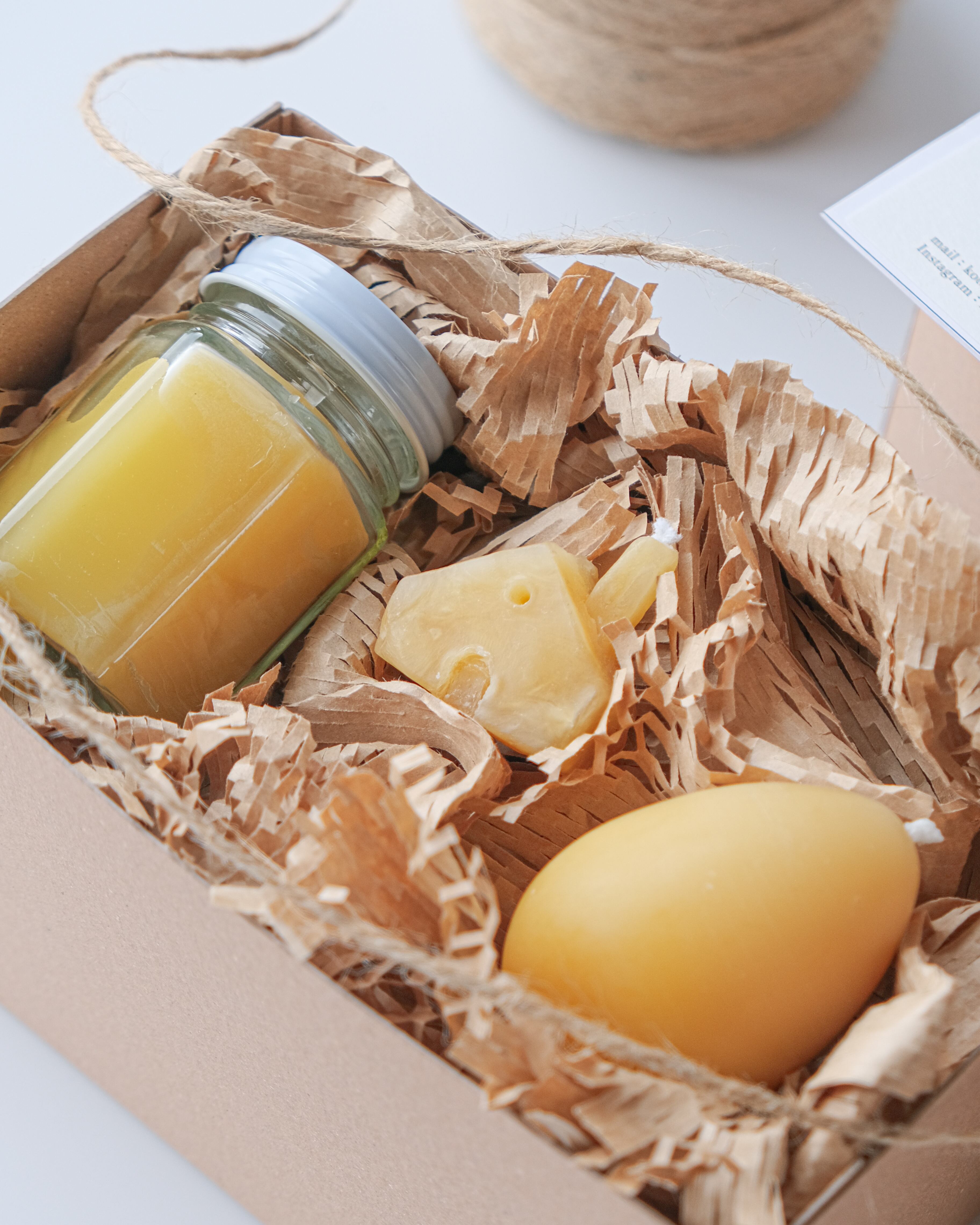 店頭とONLINE STOREで人気の蜜蝋キャンドル3点をギフトセットにしました。